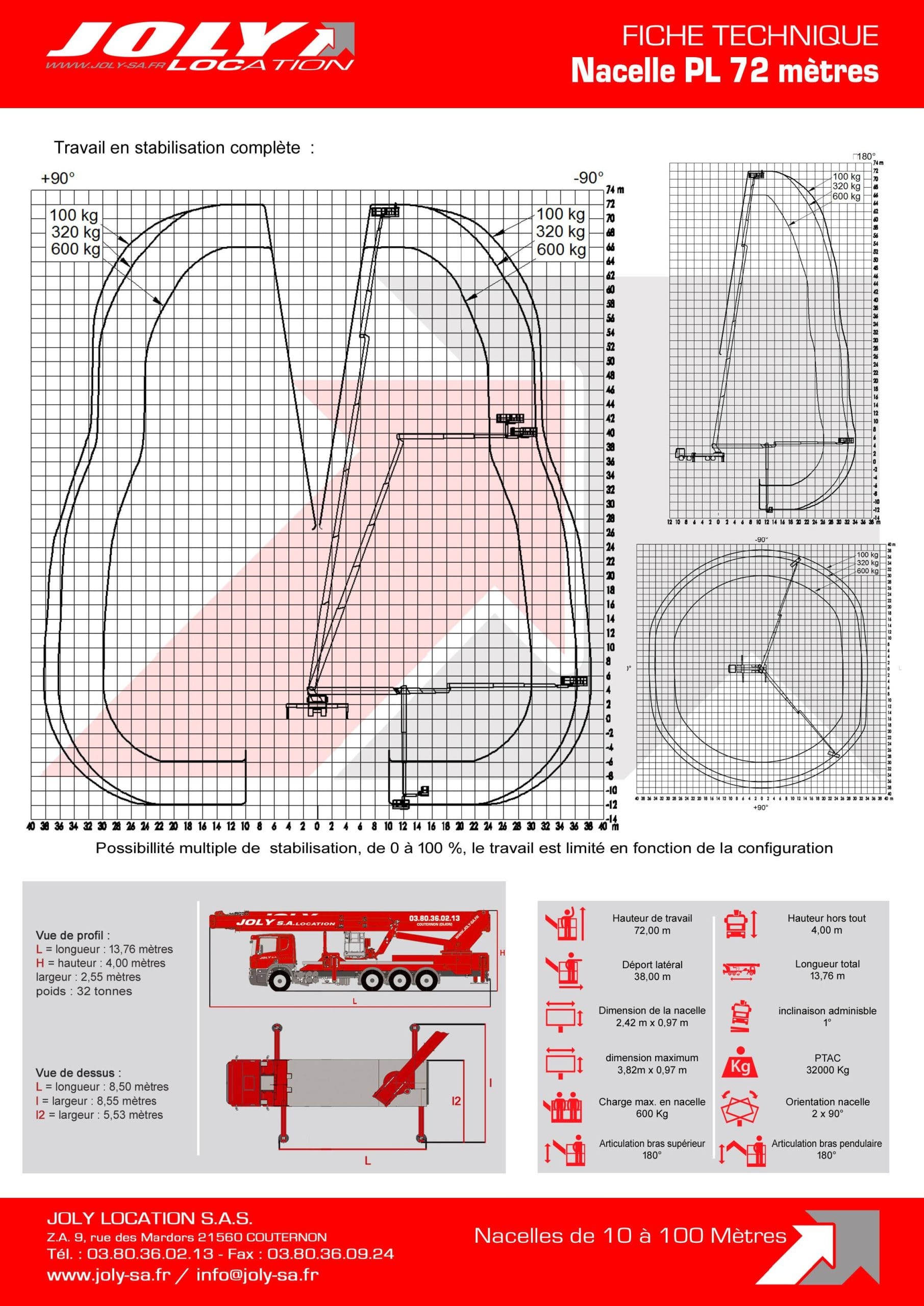 Hauteur de travail 72 mètres