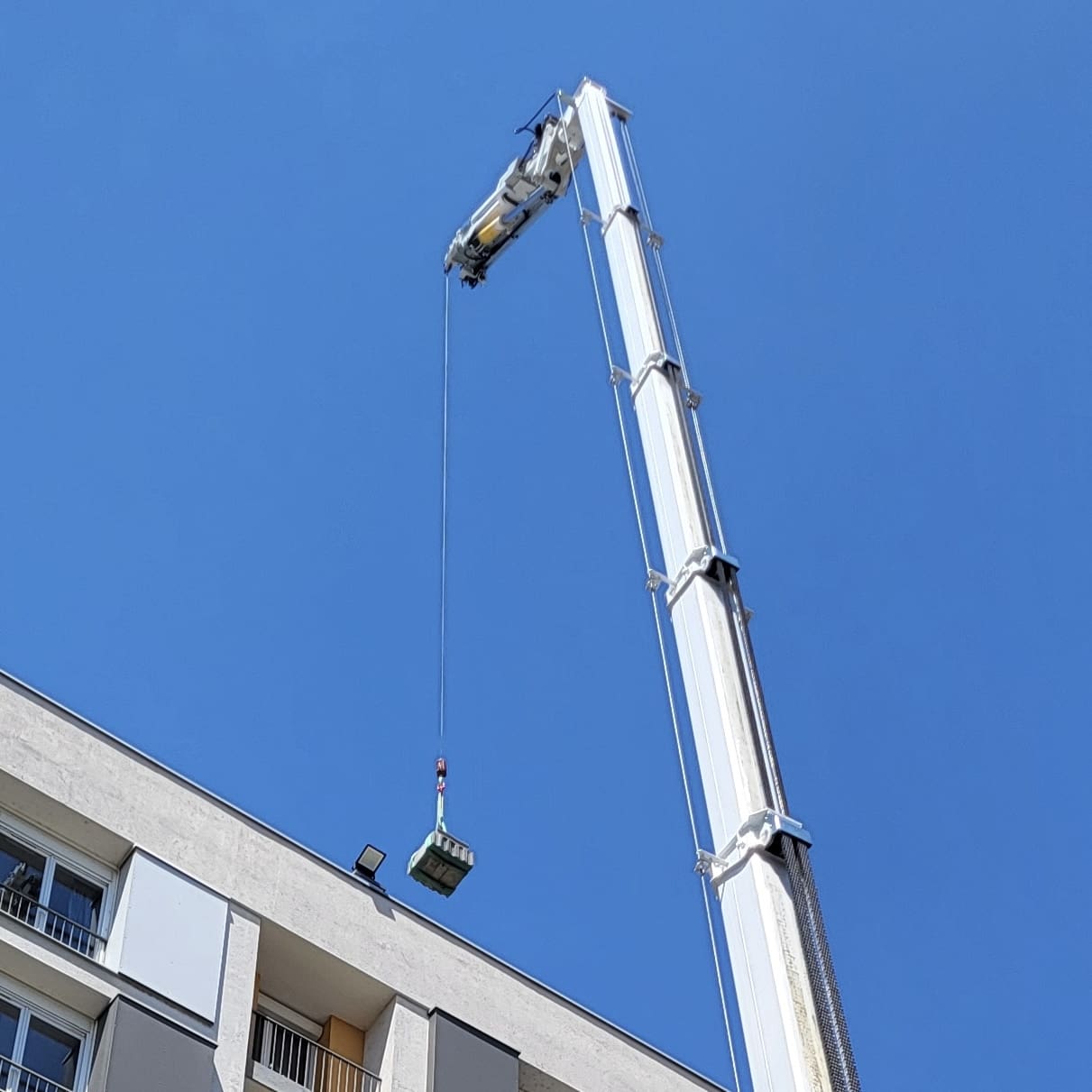 Et s’il n’y a vraiment aucun accès, il reste la voie des airs, compte tenu de son faible poids il est possible de gruter la grue araignée pour le déposer dans une cour, sur un toit.