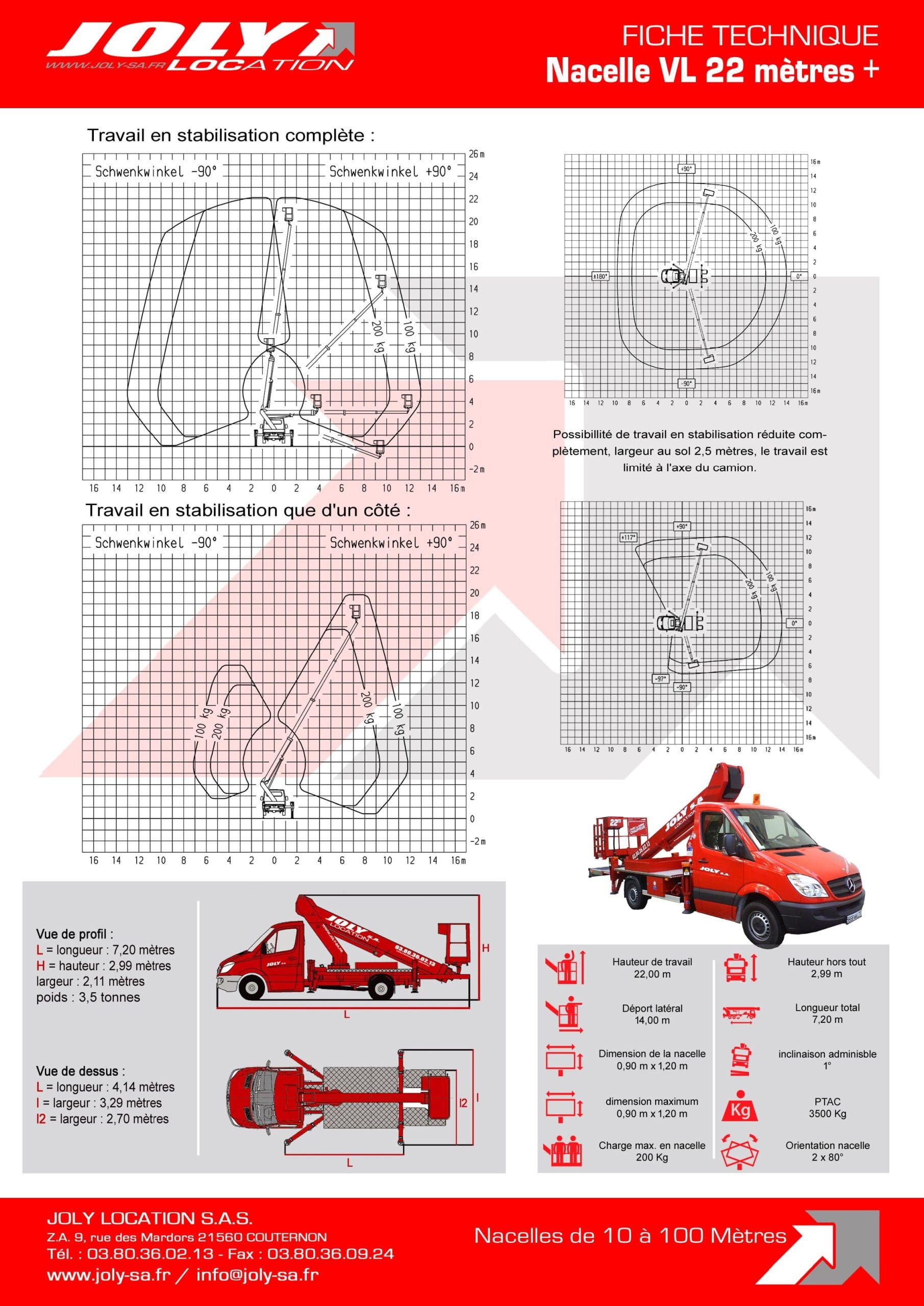 Hauteur de travail 22 mètres