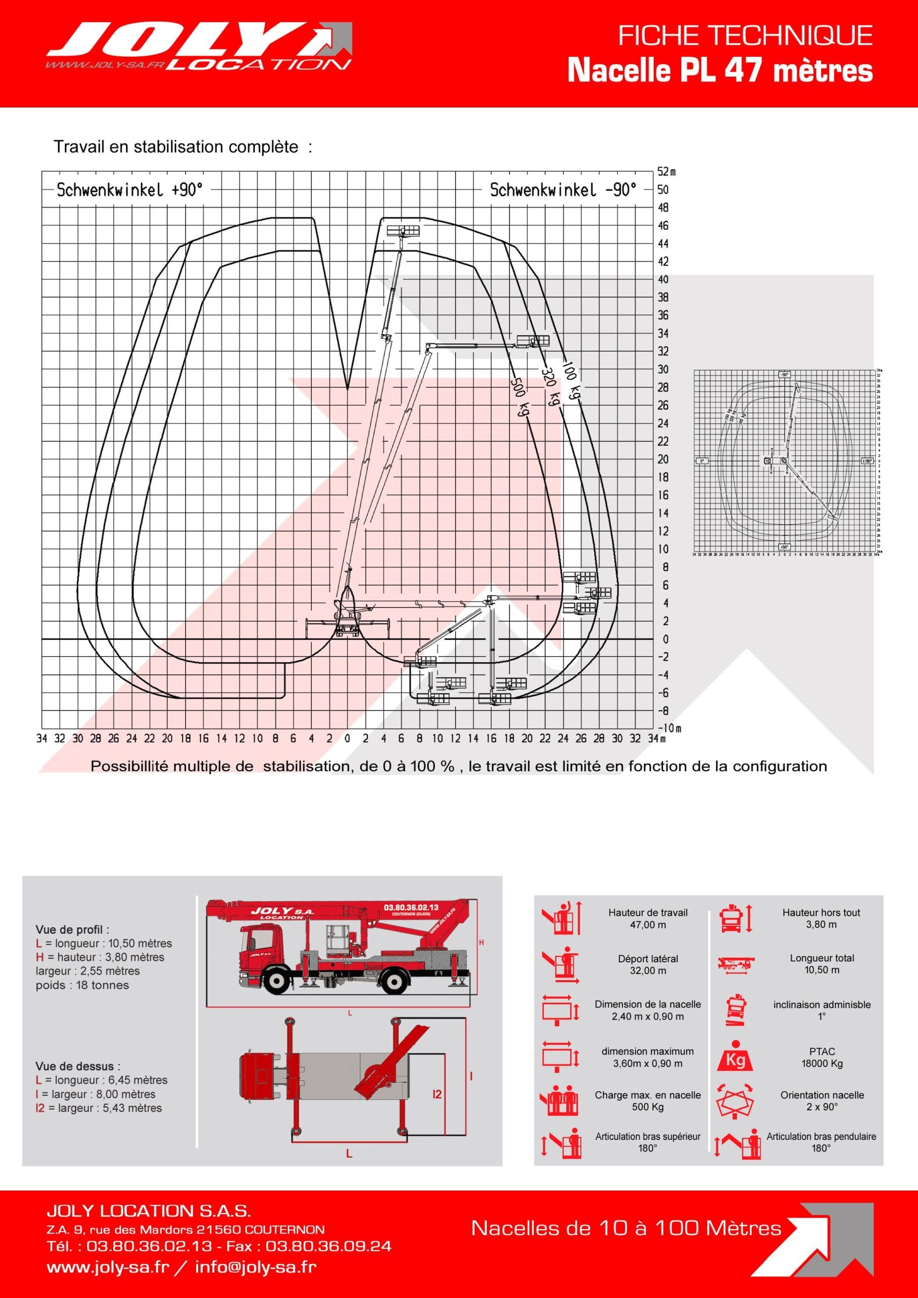 Colossal pour un véhicule de seulement 18 tonnes, avec la nouvelle technologie unique de bras orbital, la nacelle garde une grande capacité de déport à grande hauteur, 21 mètres de déport à 42 mètres de hauteur !