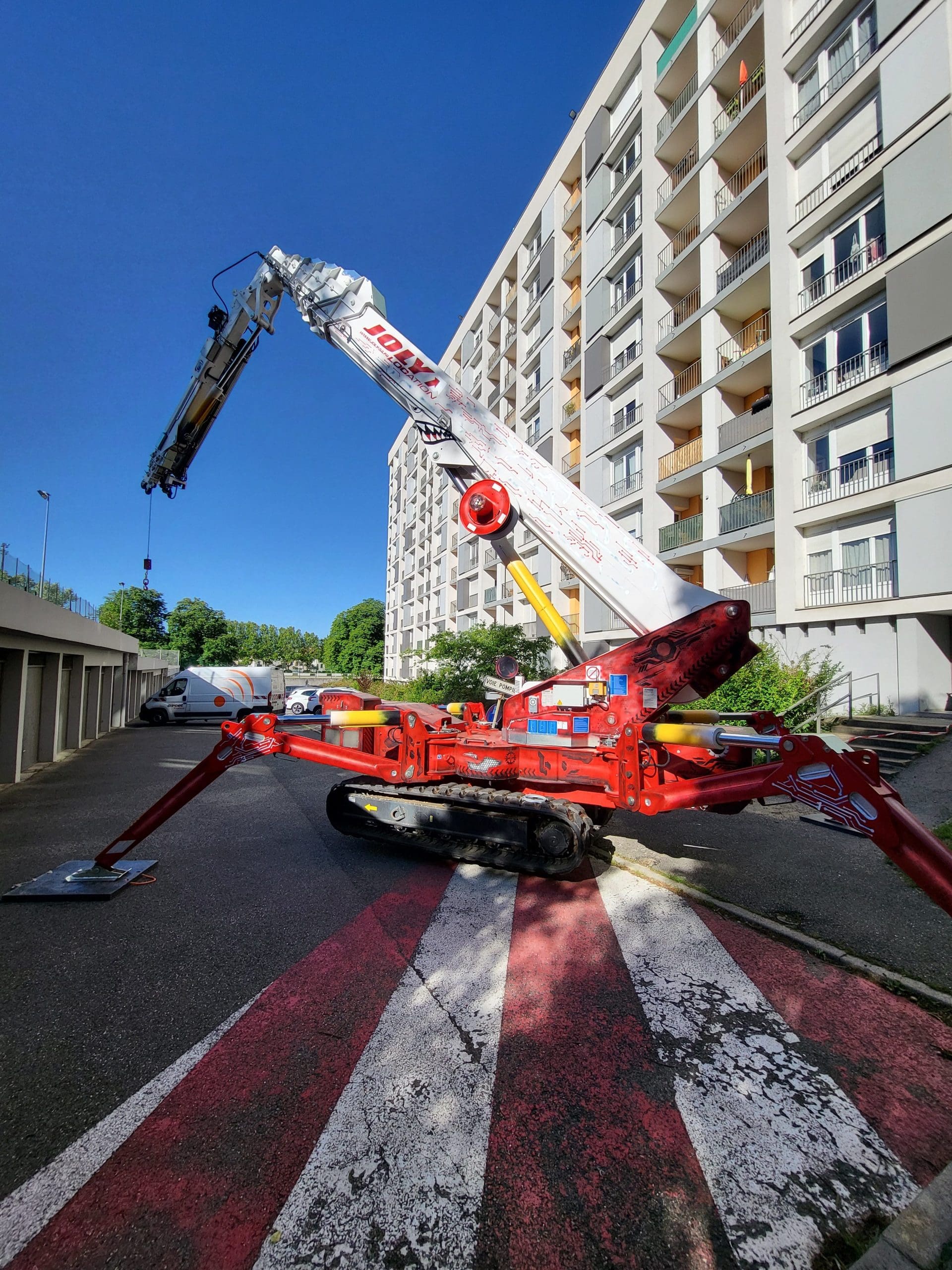 Et s’il n’y a vraiment aucun accès, il reste la voie des airs, compte tenu de son faible poids il est possible de gruter la grue araignée pour le déposer dans une cour, sur un toit.