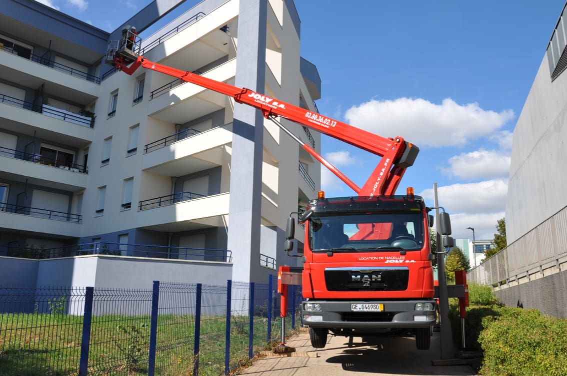 Une grande flotte de nacelles sur poids-lourds jusqu’à 100 mètres avec opérateur formés et habilités